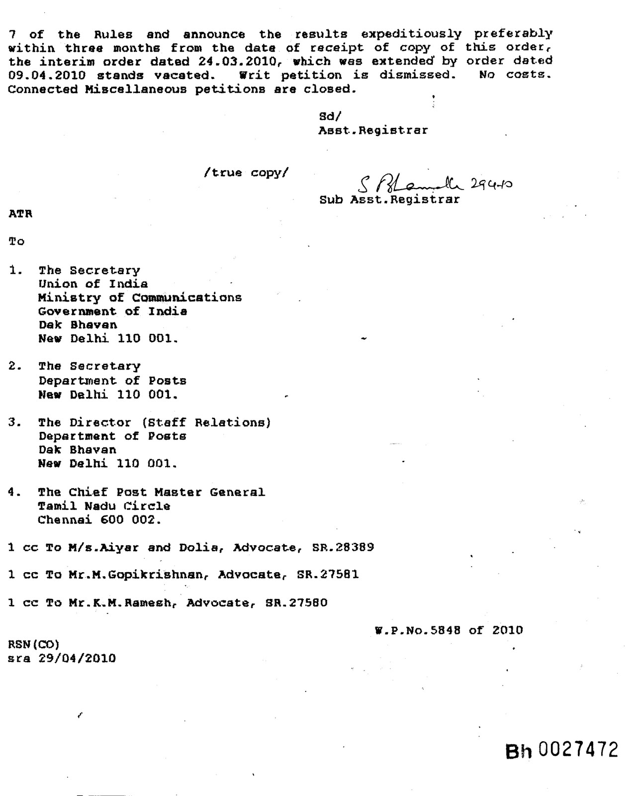 6. Receipt of this letter may kindly be acknowledged to the ADG (Bldg.), Dak Bhawan, Parliament Street, New Delhi -110001.