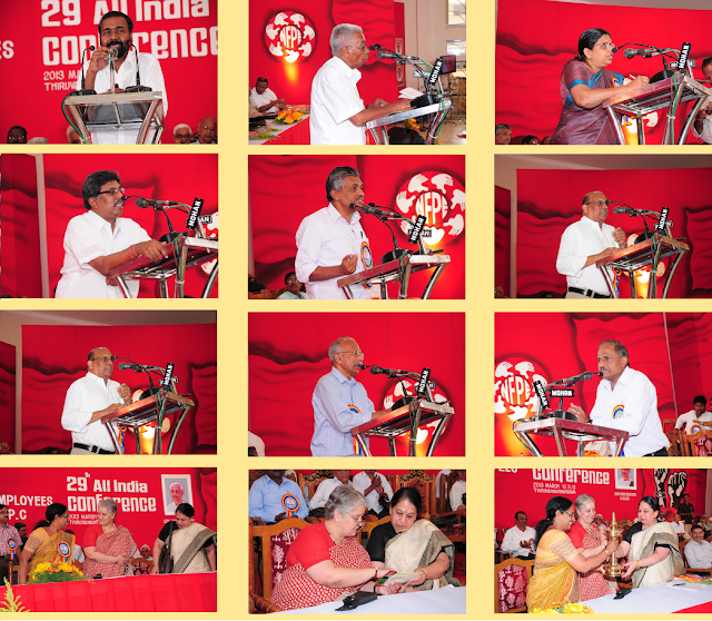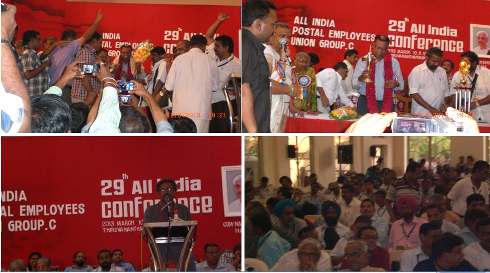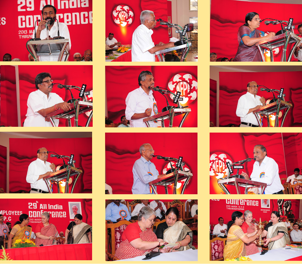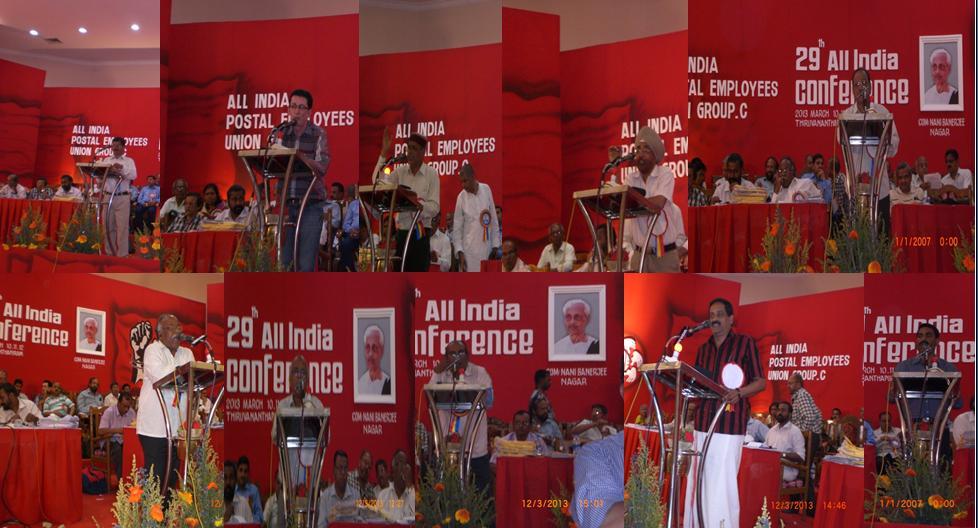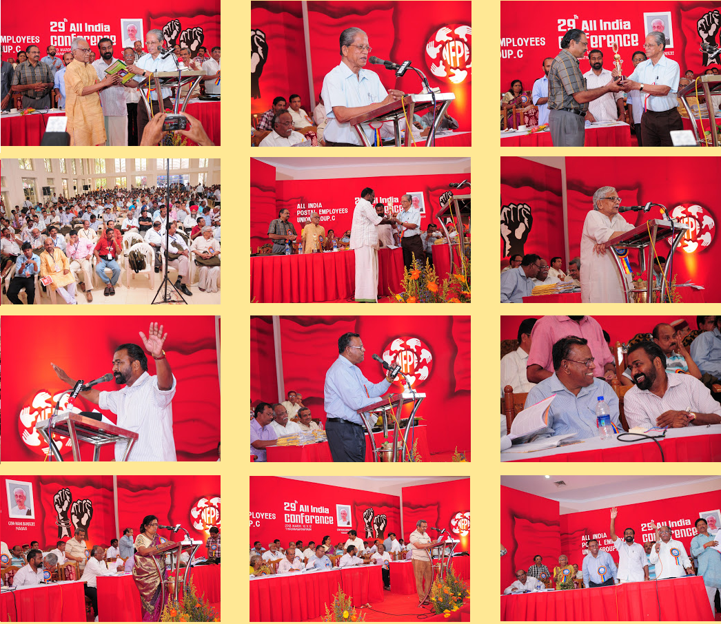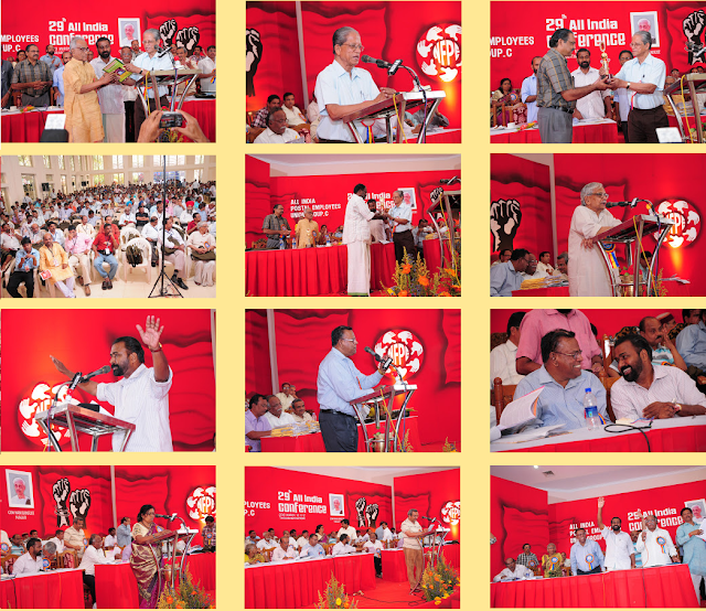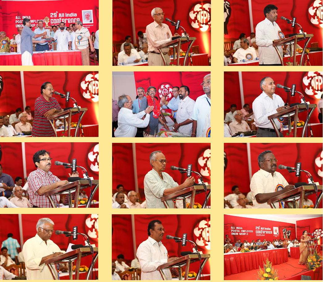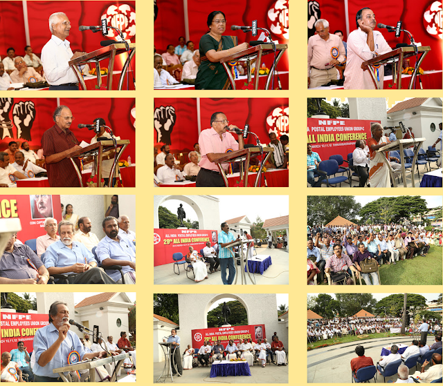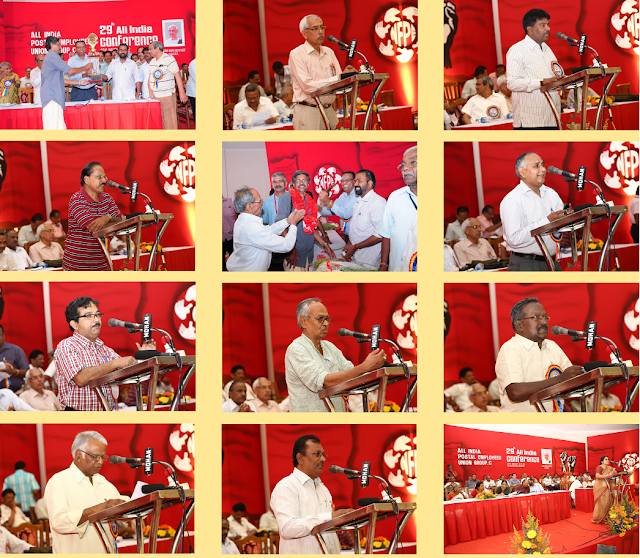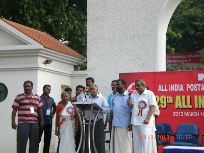 with their speeches. Com. P. Karunakaran, MP & Chairman NFPE Kerala, Sri R.