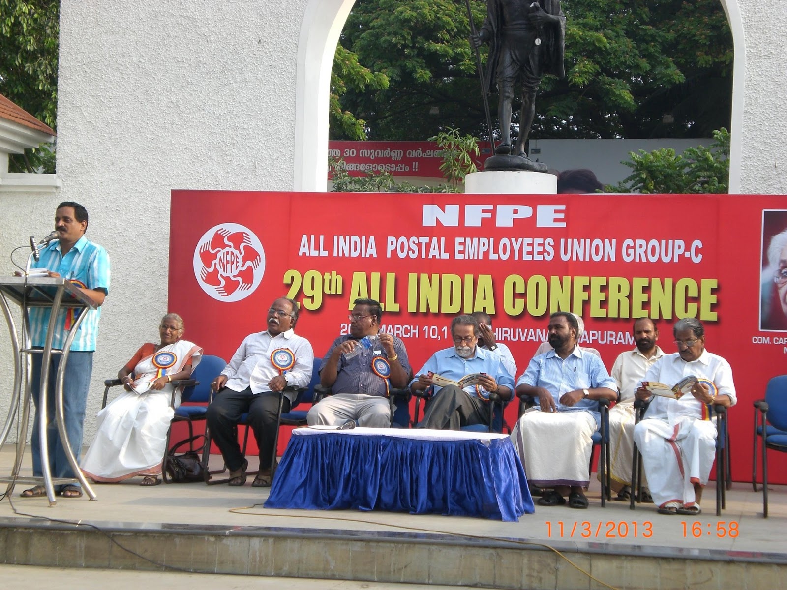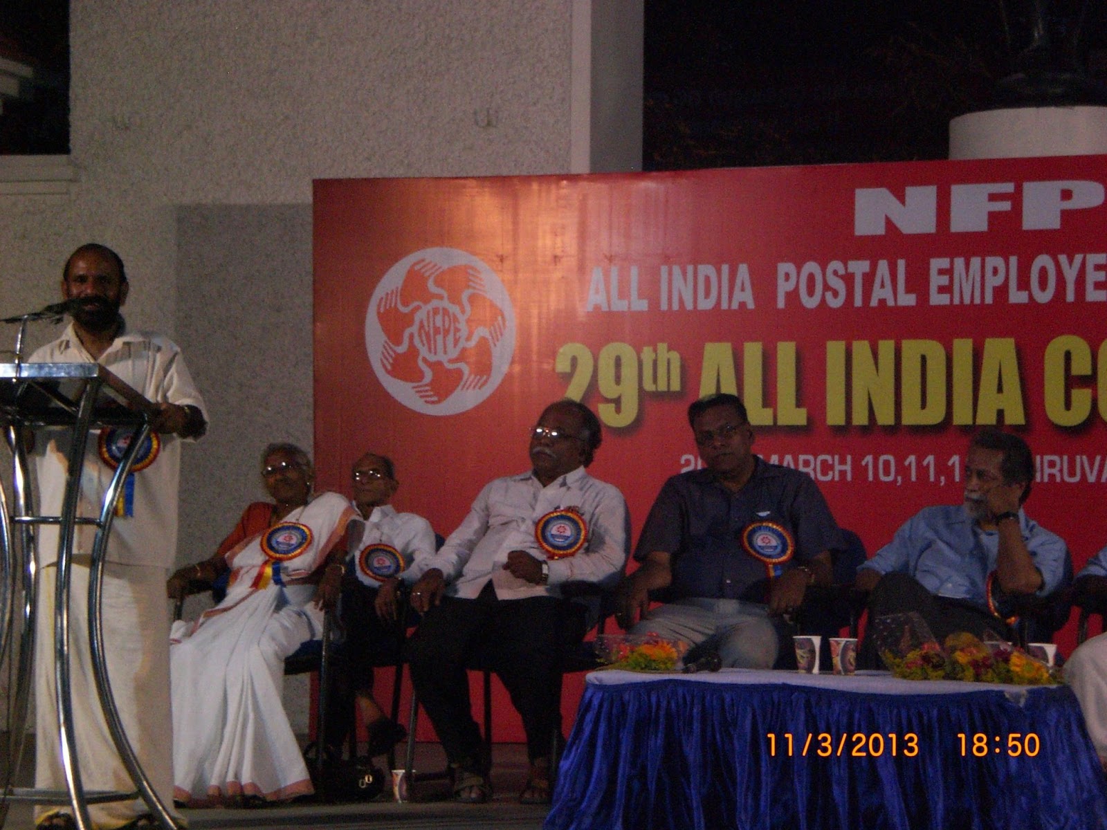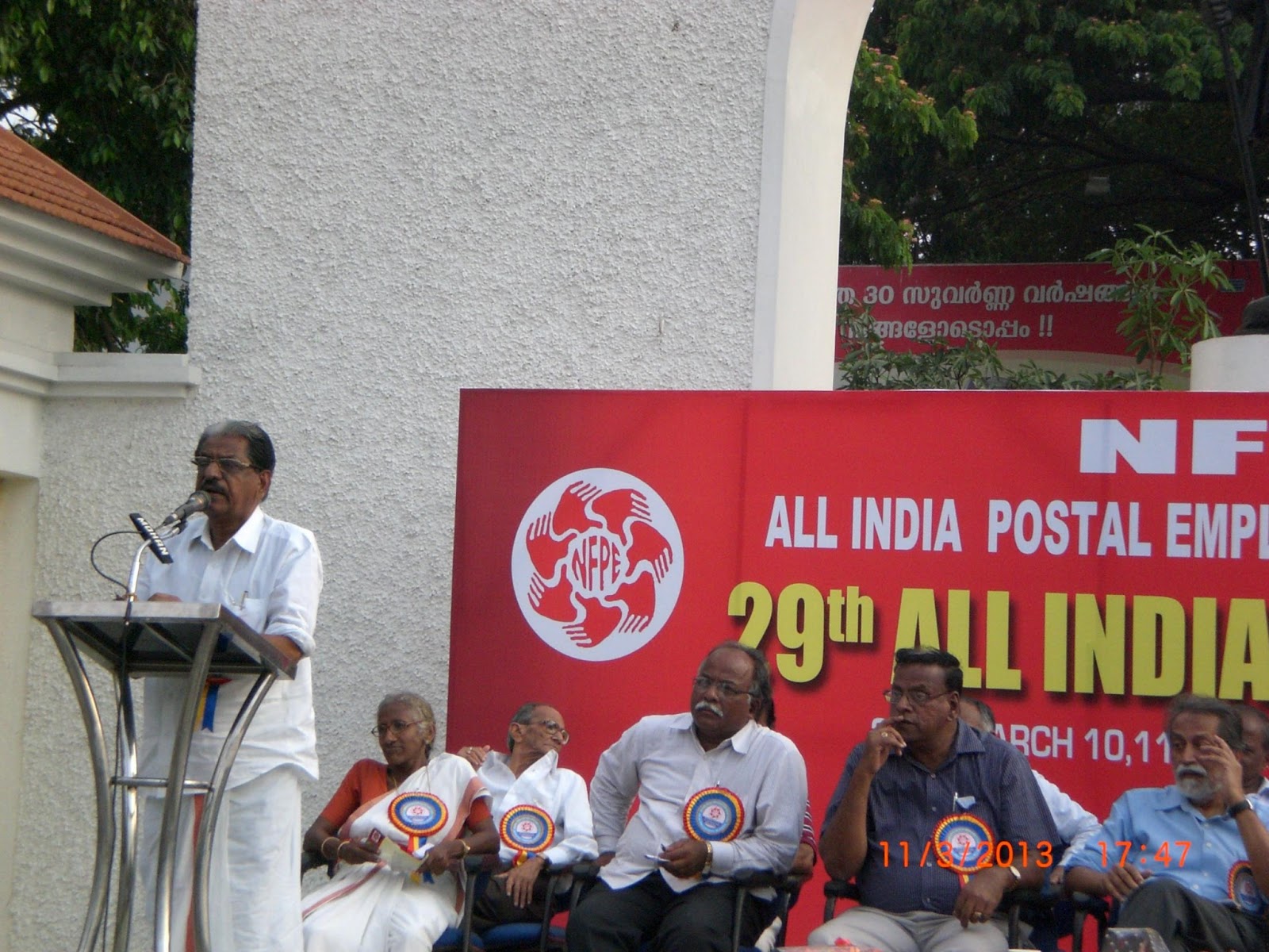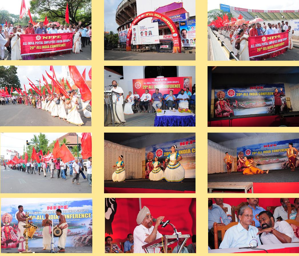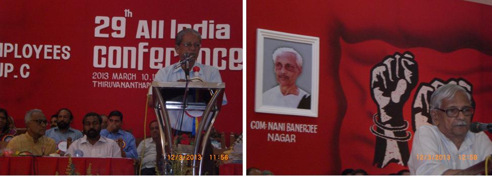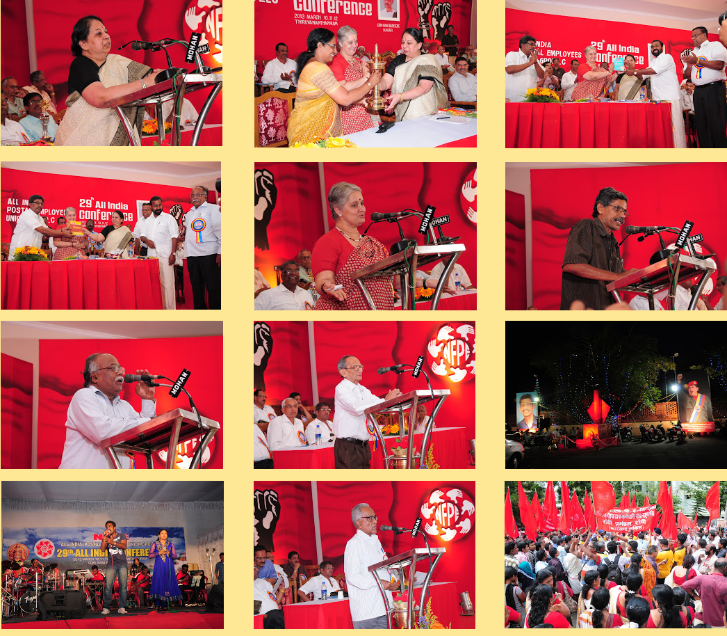 with their speeches. Com. P. Karunakaran, MP & Chairman NFPE Kerala, Sri R.