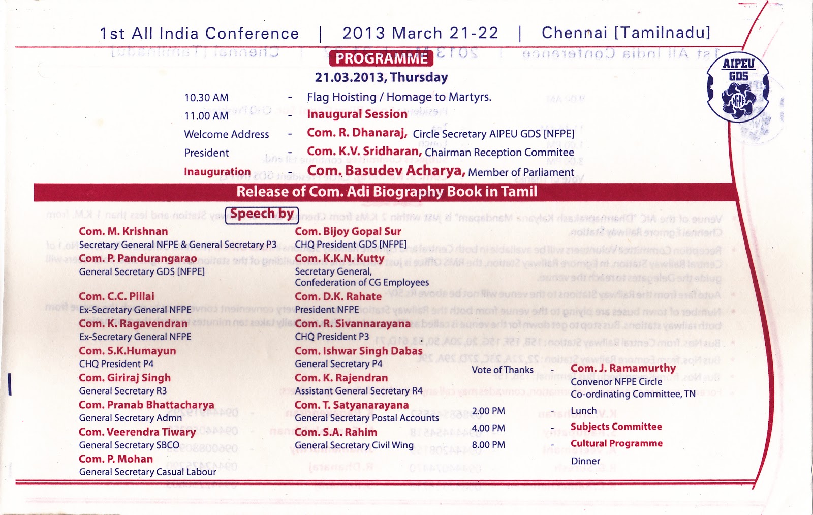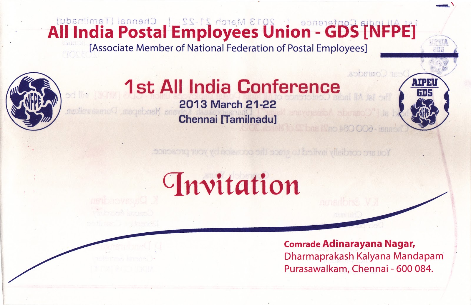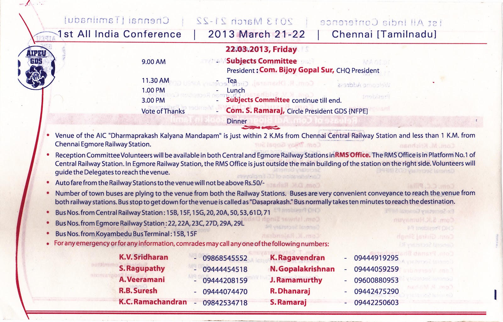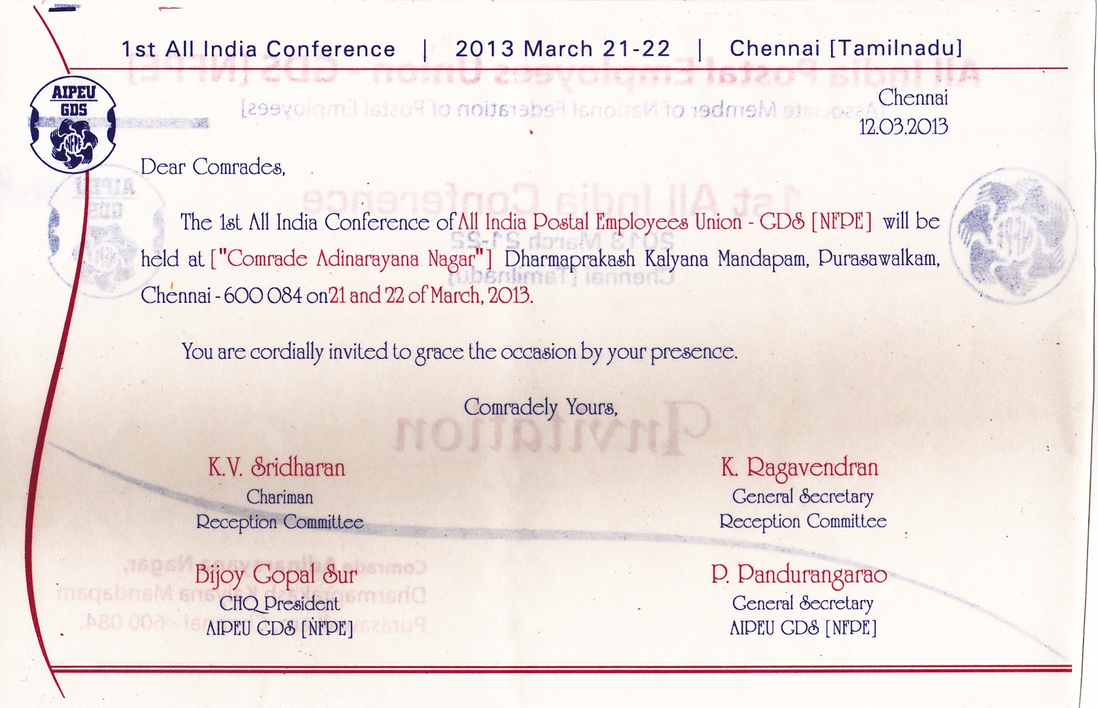 India conference of our union was held from 10.03.2013 to 13.03.2013 at RDR