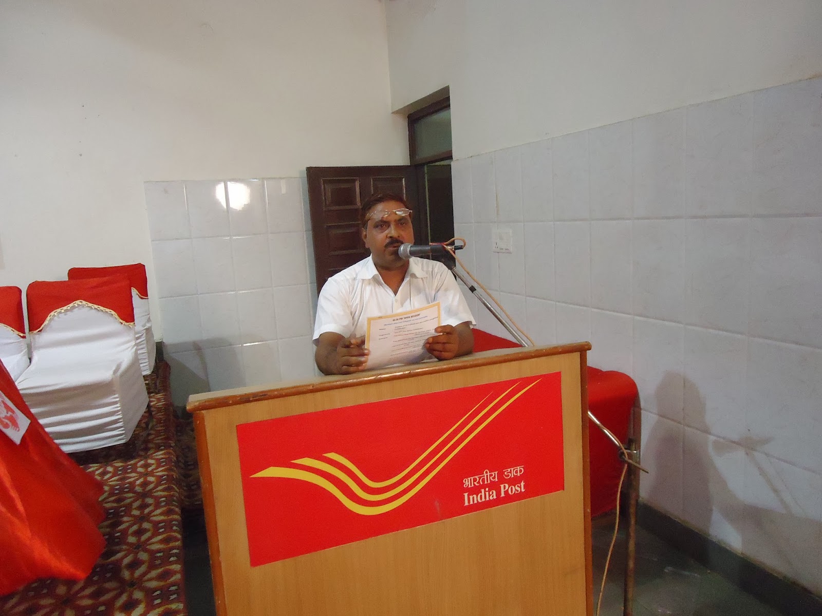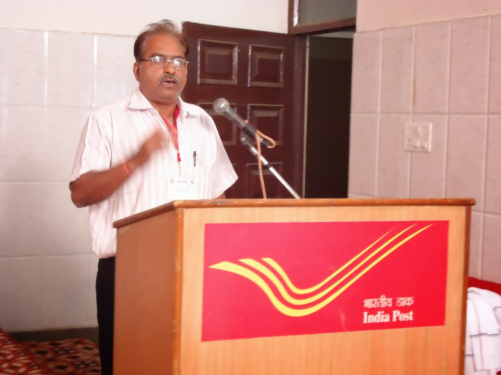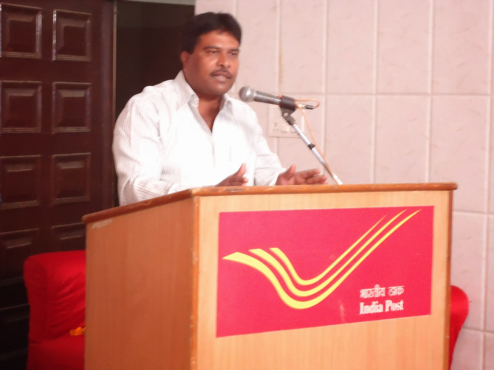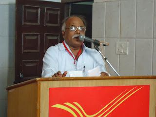 At 5P.M. a Seminar on “ Future of India Post” was organized .Shri John Samuel , Director, Postal Staff College Ghaziabad was the Chief Guest who made very excellent power point presentation on the subject. As a Guest of Honour , Shri V.K. Verma, Joint Director Postal Staff College, Shri Umesh Verma, Joint Director, Postal Staff College , Shri Sanjay Singh , Director Ghaziabad and Shri B.K. Singh ADG Philately Postal Directorate , New Delhi were present and they delivered very good speeches on the subject. All The officers were honoured by the Reception Committee by presenting flower bouquets, Shawls, mementos and files. Vote of thanks was offered by Com. R.N. Parashar, ASG, NFPE.