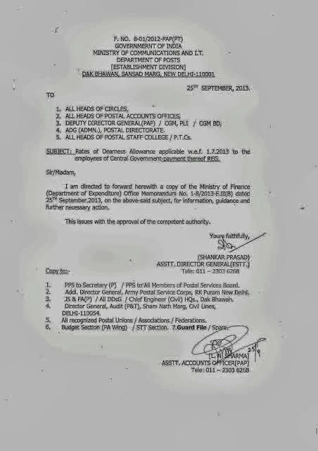 employees and Dearness Relief (DR) to pensioners with effect from 01.07.2013,