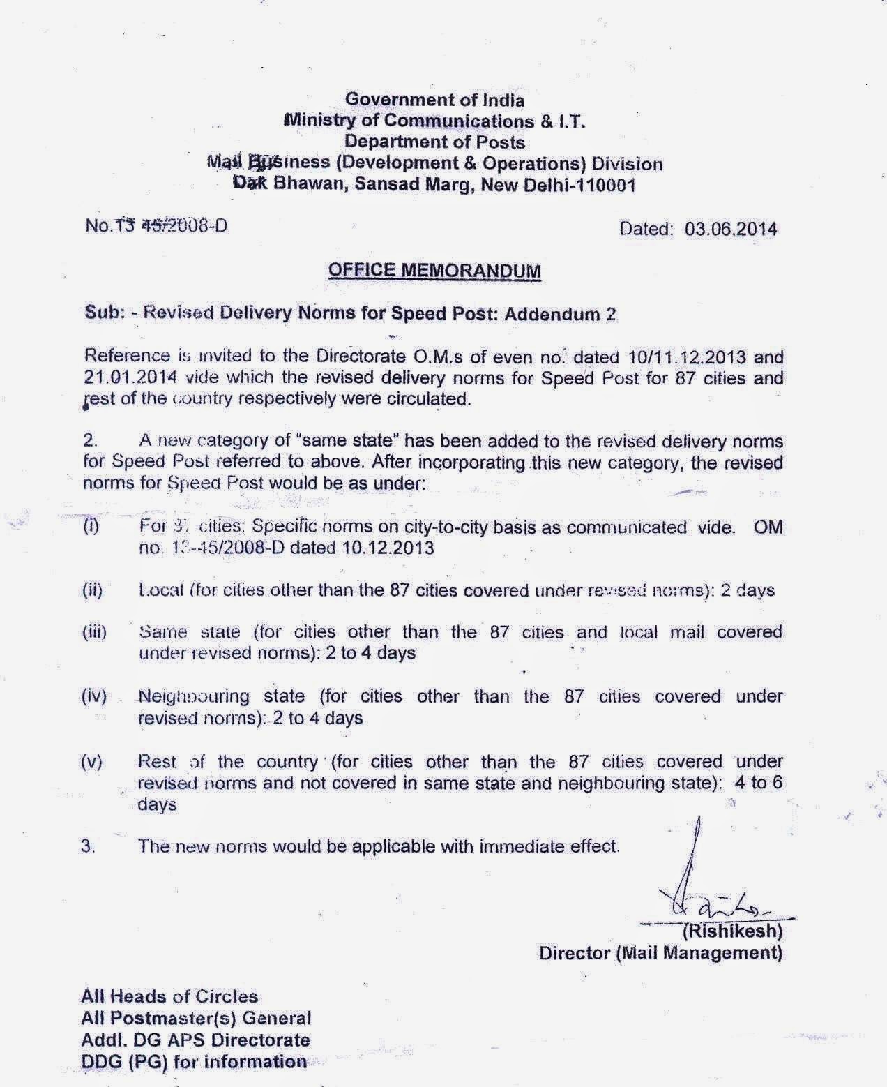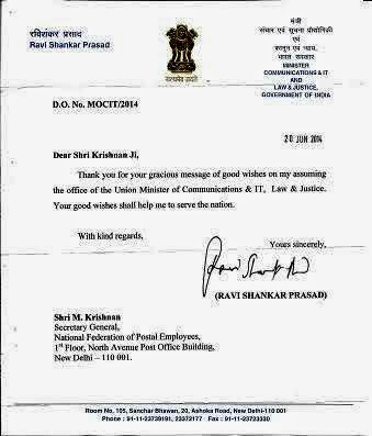 IT, Department of Posts, has issued orders on 24.06.2014, granting trade union