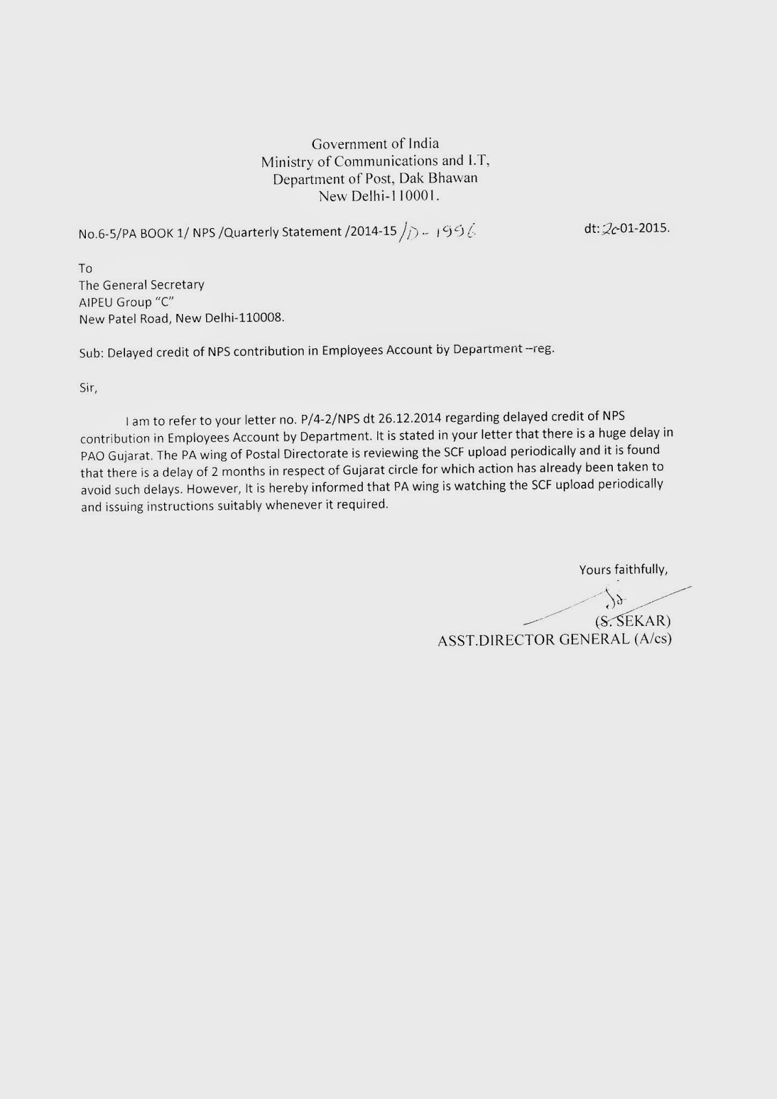 General NFPE. Com. P.V.Rajendran Circle Secretary R III & State Convenor,