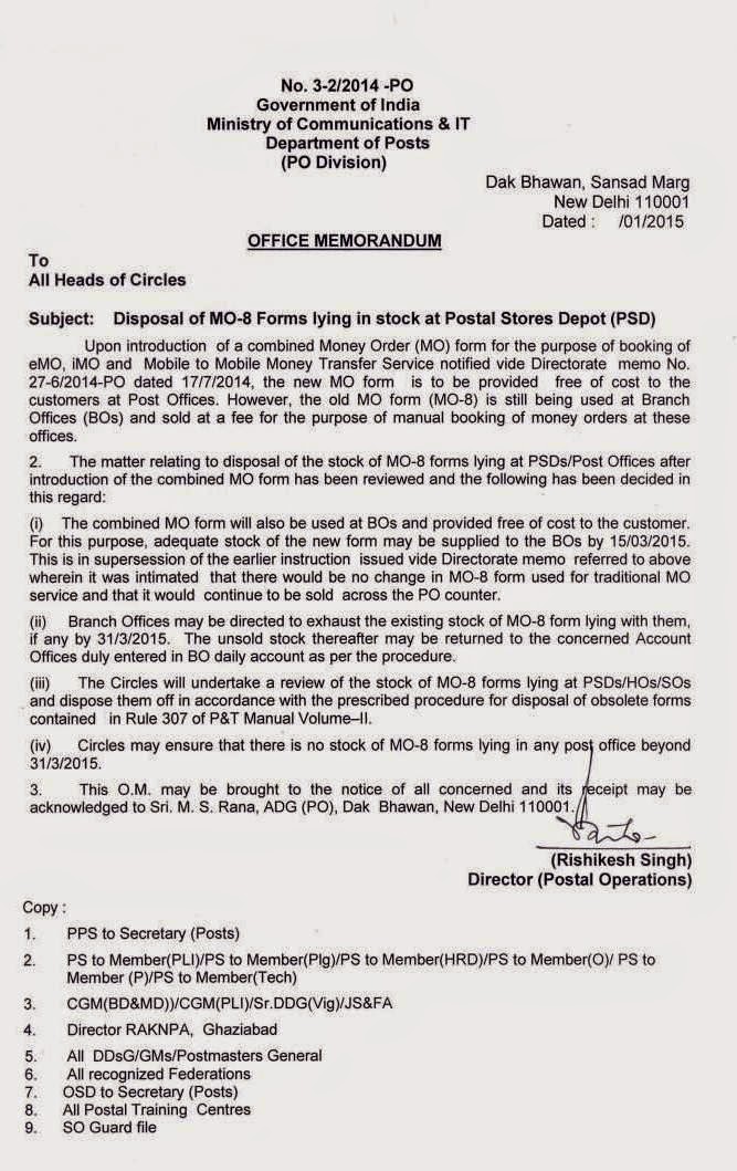 members of Kerala Circle including Gramin Dak Sevaks. There will be no public collection.