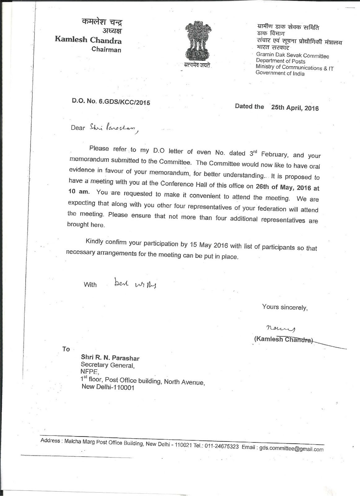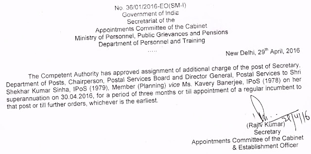 Posts O.M. No.1-20/2008-PCC (Pt) dated 08.04.2016.