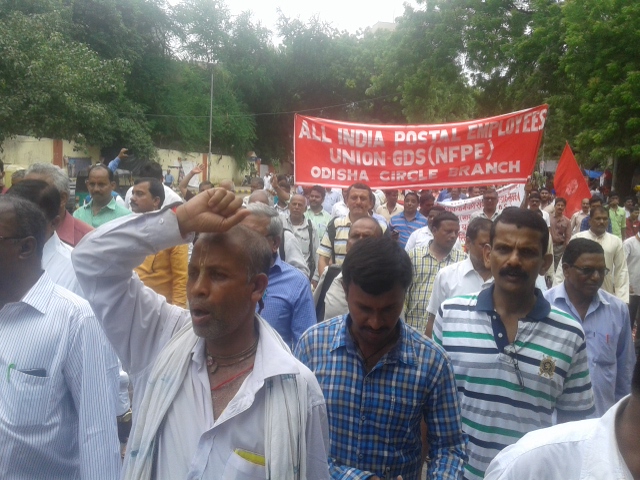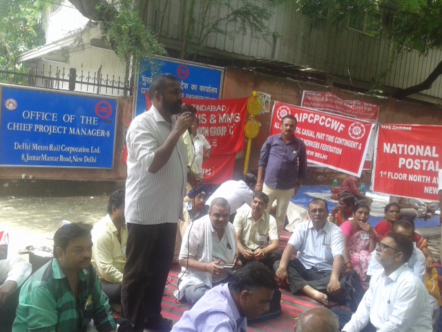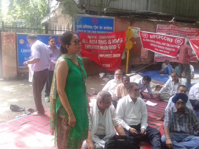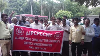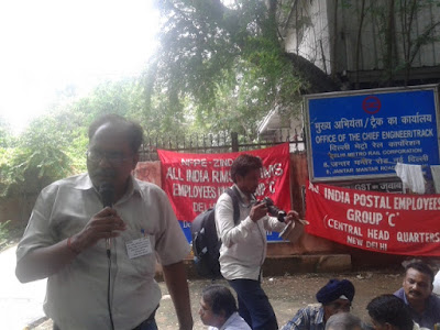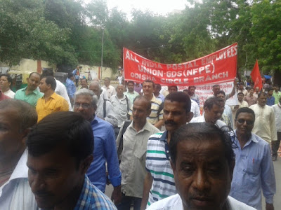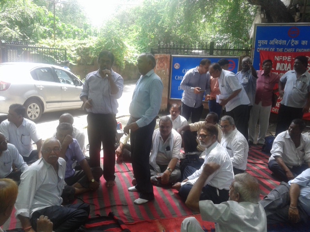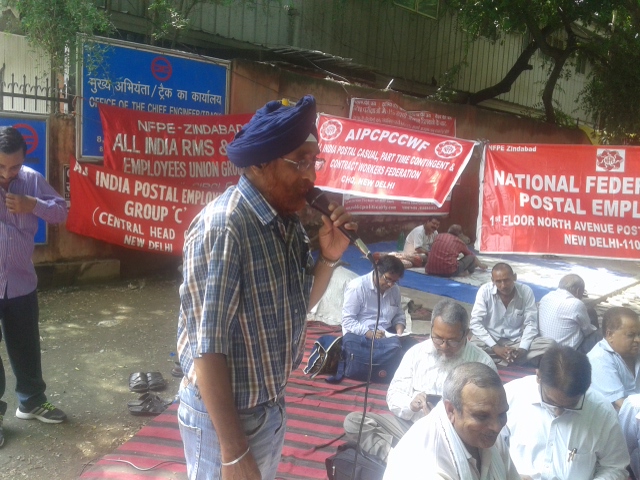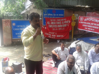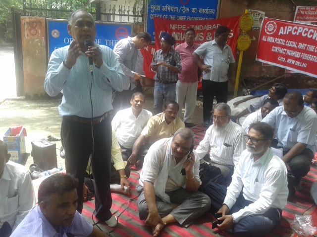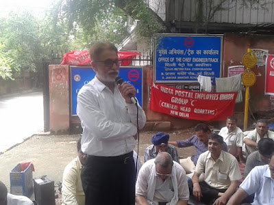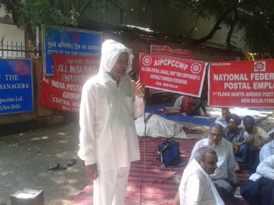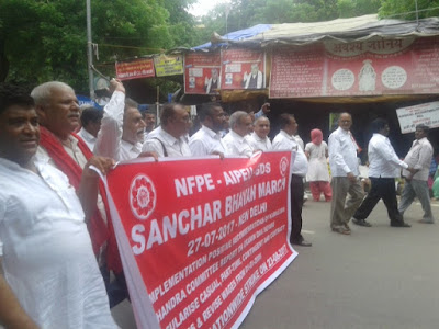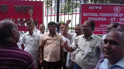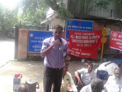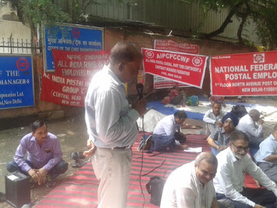In continuation of phased agitational programme as third phase programme a massive Dharna under banner of NFPE was organized at Dak Bhawan New Delhi since 10 A.M. to 3 P.M. All General Secretaries & Secretary General NFPE lead today on date 26.07.2017 the Dharna Programme . Hundreds of All India and Circle leaders of all NFPE unions from all corners of country participated in Dharna.