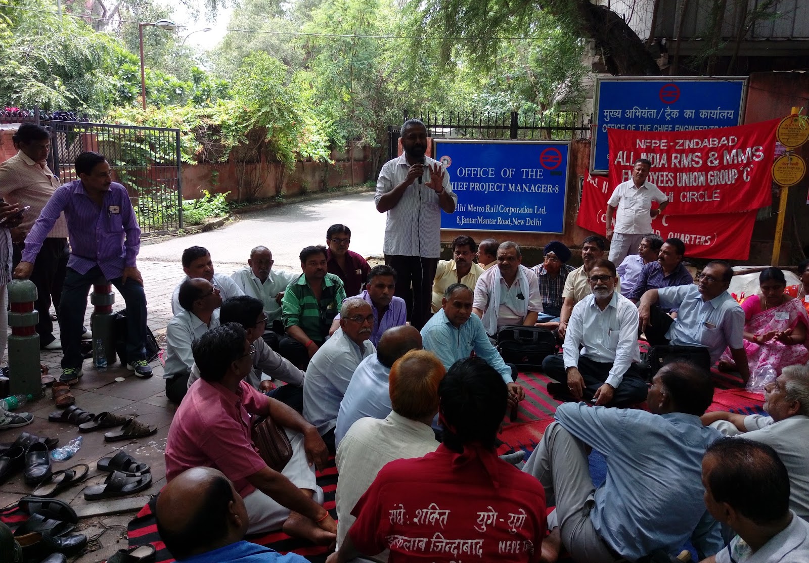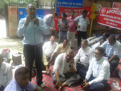 A meeting was conducted at place of Dharna, which was Presided over by Com. Giriraj Singh, President, NFPE. In the beginning Com. R.N. Parashar Secretary General NFPE elaborately described the need of agitational programmes including one day strike on 23rd August, 2017. He described the importance of all 10 demands mentioned in Charter of Demands which are of most importance for Postal employees. He stated that the all three phased programmes are grand success. He appealed to all to make the One Day Strike for date 23rd August -2017 a Historic Success to achieve our genuine and most justified demands.