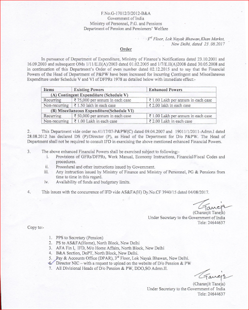 Financial Powers of the Head of Department of P&PW have been increased for incurring Contingent and Miscellaneous Expenditure under Schedule V and VI of DFPRs 1978...
