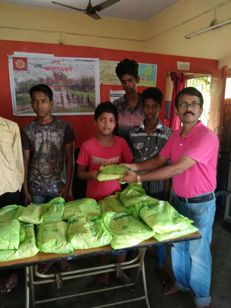 IN WHICH, DISTRIBUTED ABOUT 304 NEW DRESSES AMONG THE STREET CHILDREN, ORPHANAGE, FLOOD AFFECTED AREA CHILDREN, CHILDREN OF VERY POOR REMOTE VILLAGES OF MEDINIPUR DISTRICT, EVEN TO THE CHILDREN OF VERY POOR MINORITY VILLAGES TOO.