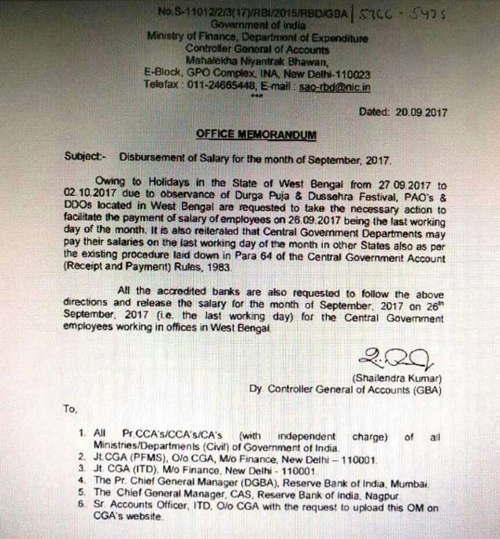 3. Deputy CGA, Govt. Banking Arrangements, D/o Expenditure informed that an on-line salary application