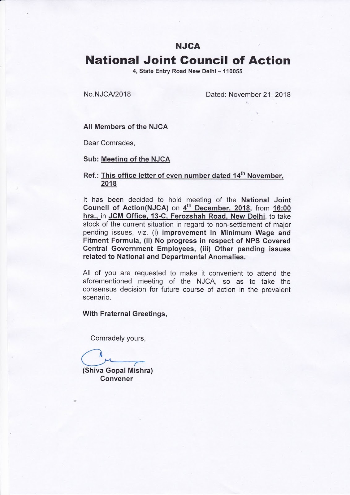 So therefore taking a serious note of all the above mentioned facts, PJCA has decided unanimously to conduct 2 days strike on 8 & 9 January – 2019 for which vigorous campaign will be launched . All leaders of NFPE & FNPO will carry on the campaign programme which will be declared shortly.
