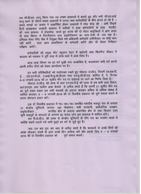 conduct 2 days strike on 8 & 9 January – 2019 for which vigorous campaign