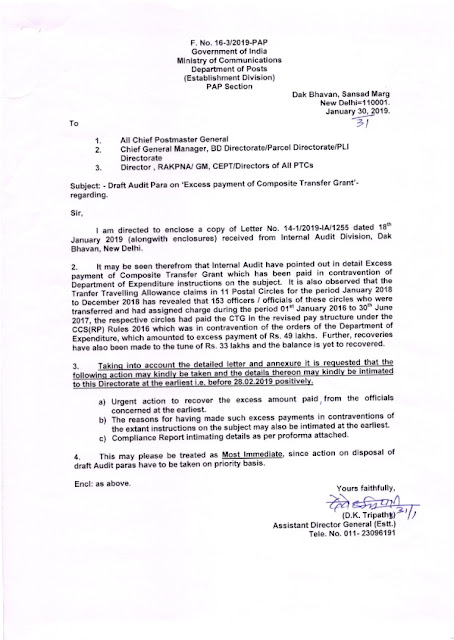 DRAFT AUDIT PARA ON 'EXCESS PAYMENT OF COMPOSITE TRANSFER GRANT'
